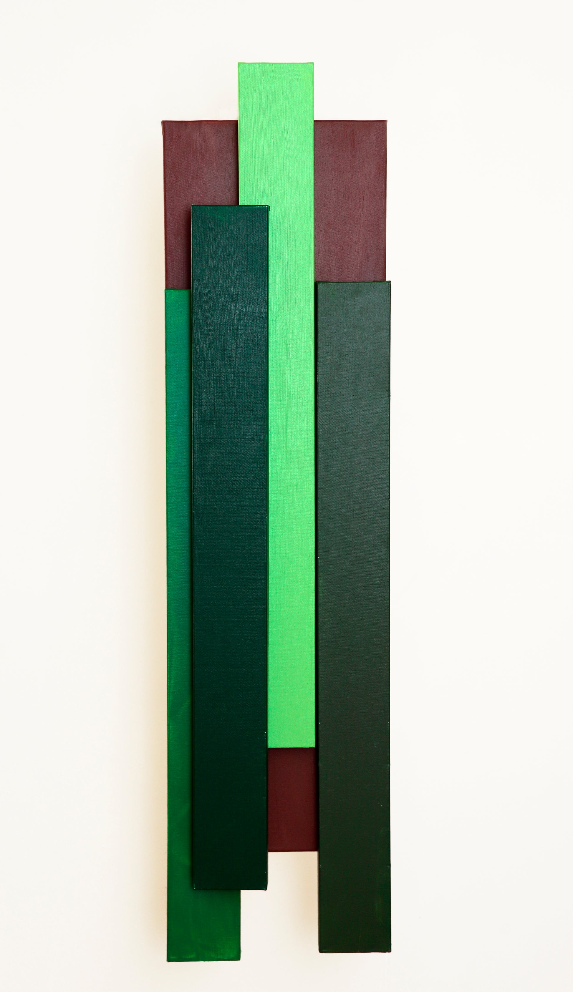 Build reflects on the evolving dialogue between nature and the built environment. With vertical forms that suggest both organic growth and architectural structure, the work explores how urbanisation shapes — and is shaped by — the natural world. Through a minimalist composition, it invites us to consider how space, balance, and material reflect the environments we inhabit and construct.