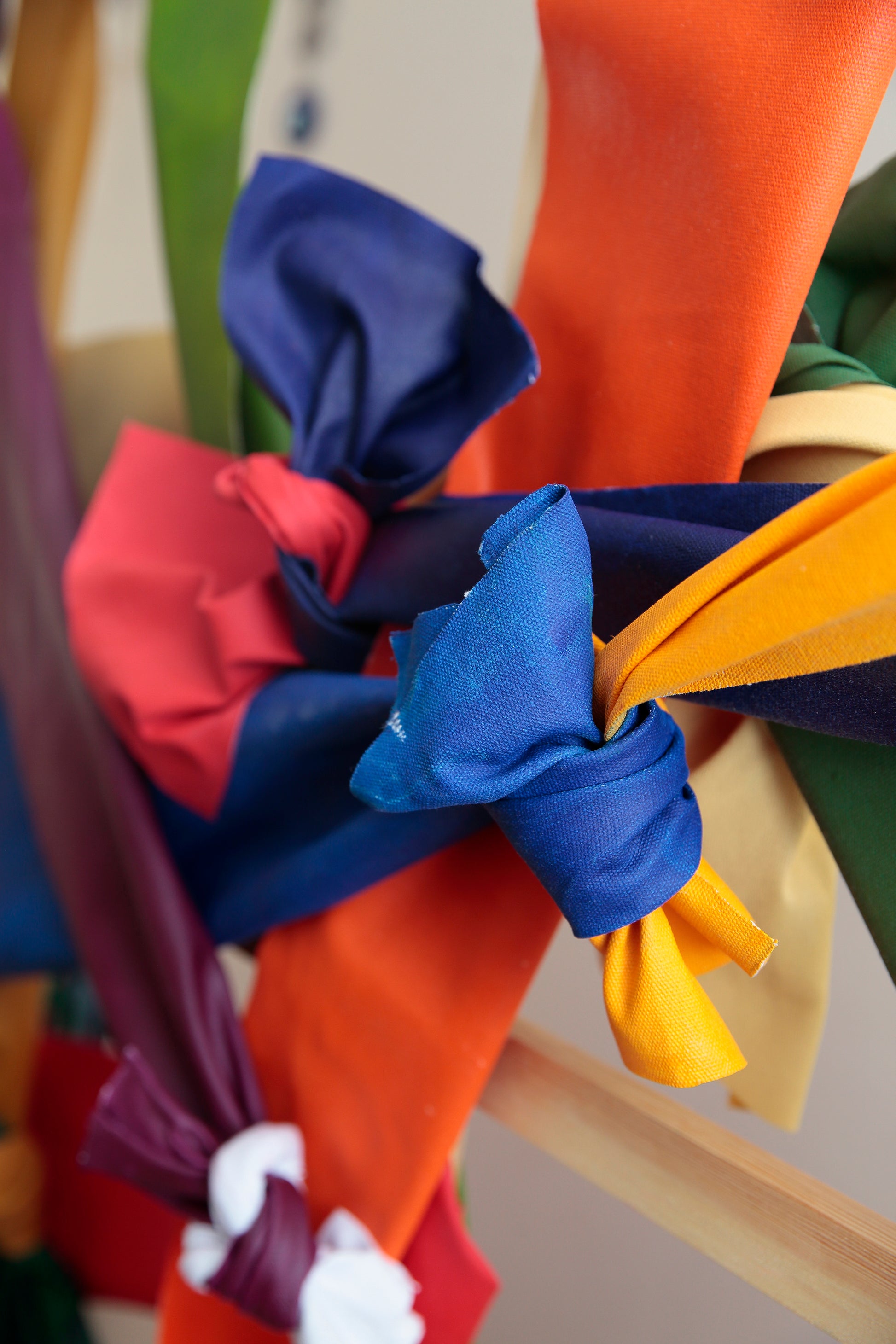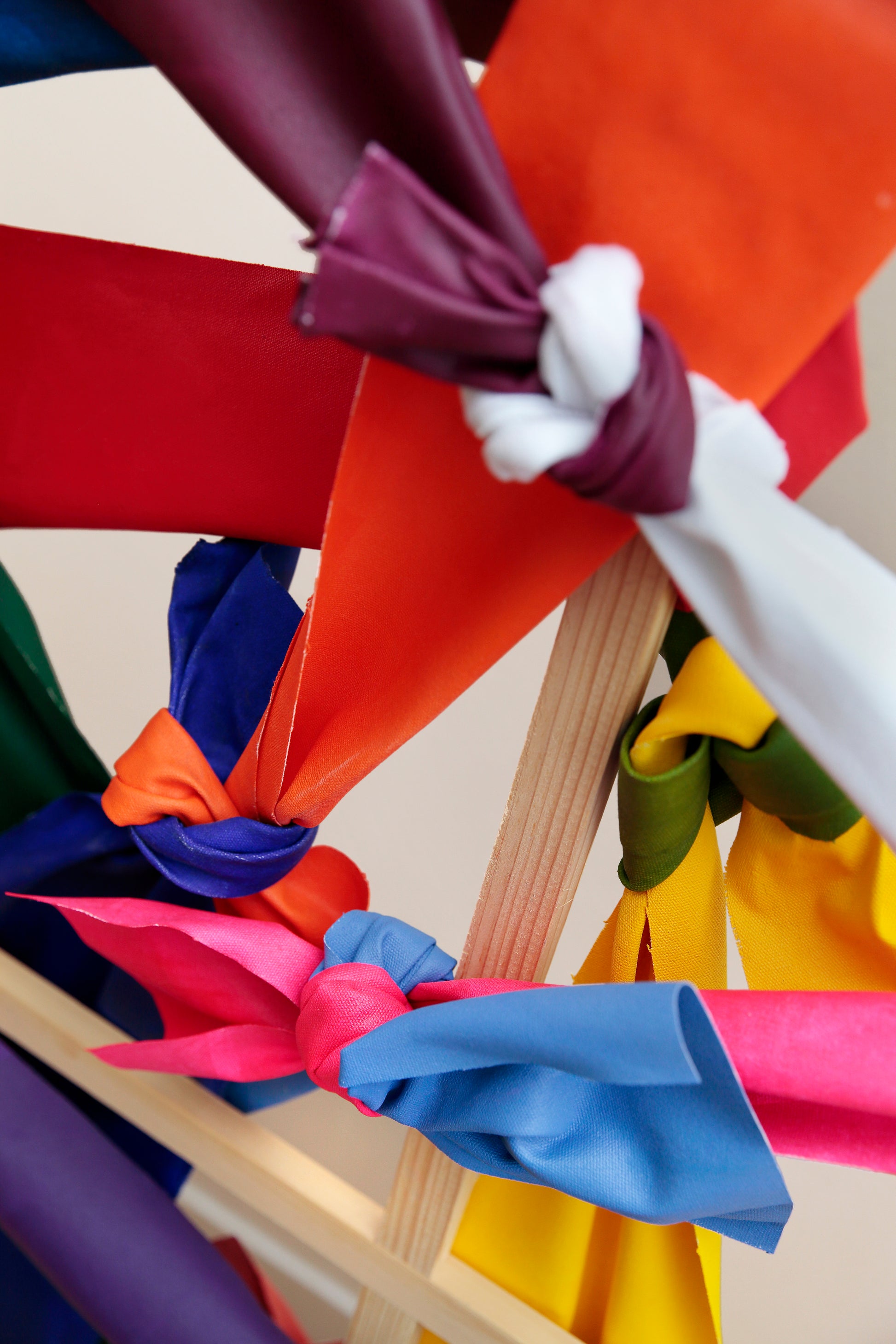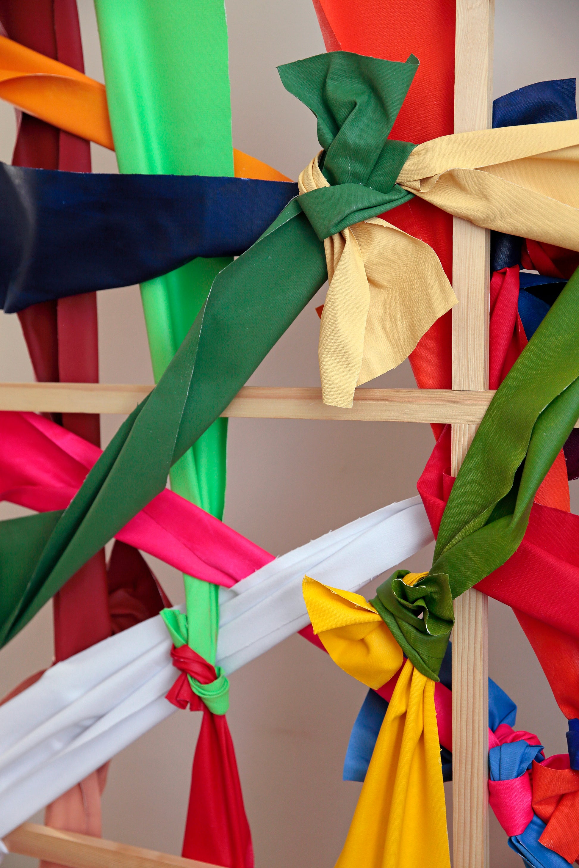 A vivid exploration of the invisible threads that bind us, Connect challenges the viewer to reflect on the layered, often tangled relationships we form — both with others and within ourselves. Tied strips of fabric stretch across a raw wooden frame, symbolizing the tension, resilience, and beauty found in human connection. Each knot becomes a moment of intimacy, struggle, or unity — a visual metaphor for the internal and external bonds that shape our identity.